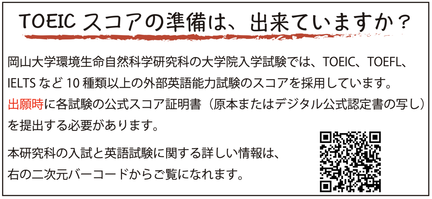 環境生命自然科学研究科 入試関連Webページ(https://www.elst.okayama-u.ac.jp/admission/nyugakushiken/nittei/)