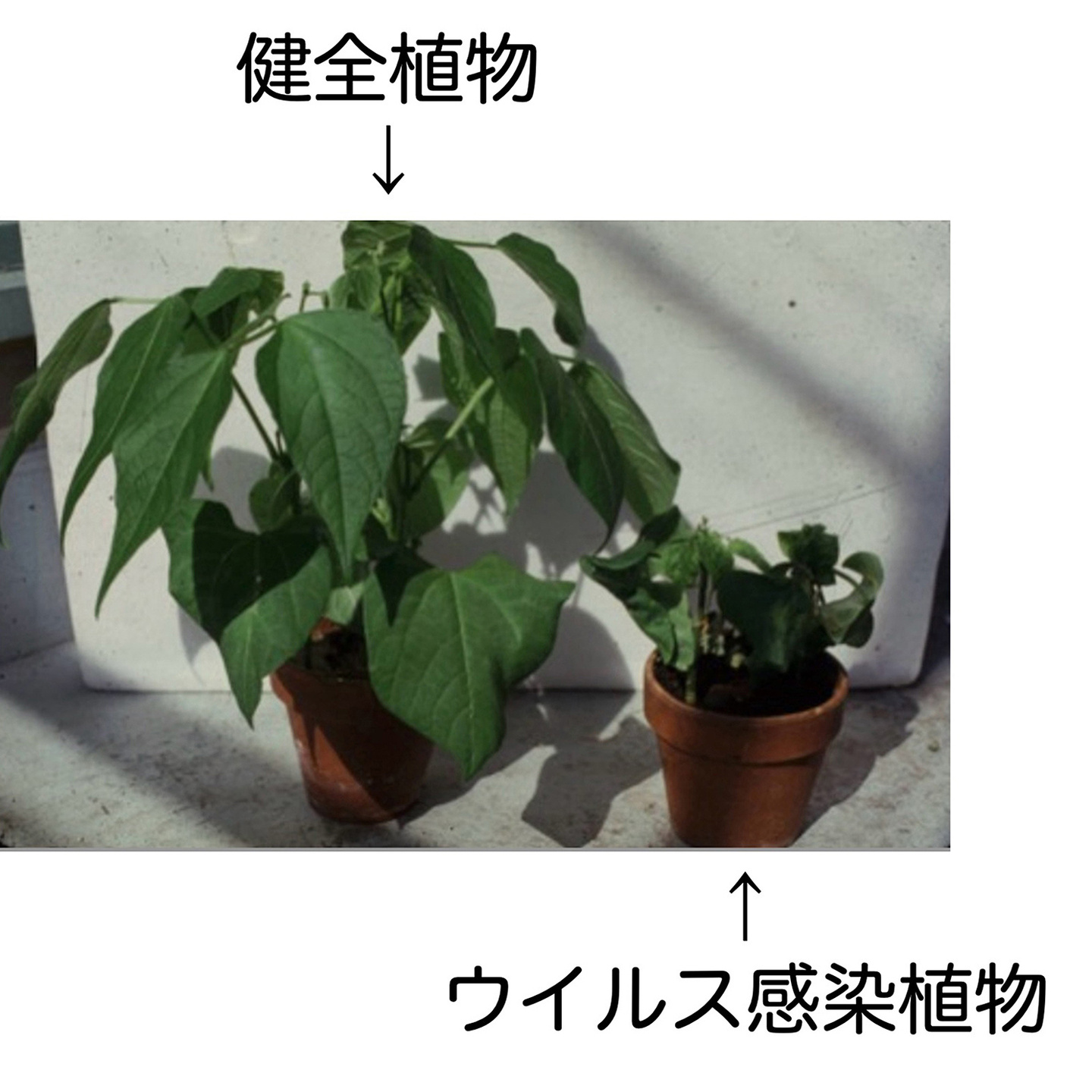 一般に植物ウイルスのゲノムサイズは宿主植物の0.01%にも満たない小さなものです。そのような限られたサイズの中で、ウイルスがあの手この手で宿主を翻弄していく様に興味を持ち、研究を始めました。