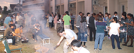 司会:そうそう、あれは楽しかったです。研究所全員中庭に集まって、たくさんグリル並べてバーベキュー。宗教上の理由でお肉など食べない人のためには、専用のグリル用意して。お店で懇親会やるのと違って立食だから、自由に歩き回っていろんな人とお喋りできるし。あれは、植物研の隠れた名物でした。