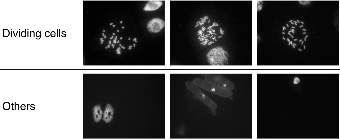 例えば、画像を分裂細胞を含むもの(Dividing cells)とその他(Others)に分類することができます。