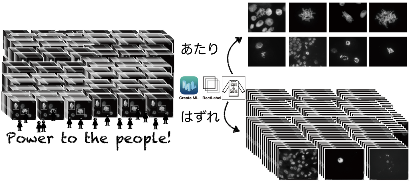 さらに、Image classifierを用いて分類用のモデルを生成できれば、自動撮影機能つきの顕微鏡でスライドガラス上のサンプルを連続撮影して、それらから目的の細胞を含む画像だけをそのモデルとRectLabelおよびCutSotrを用いて選抜できます。