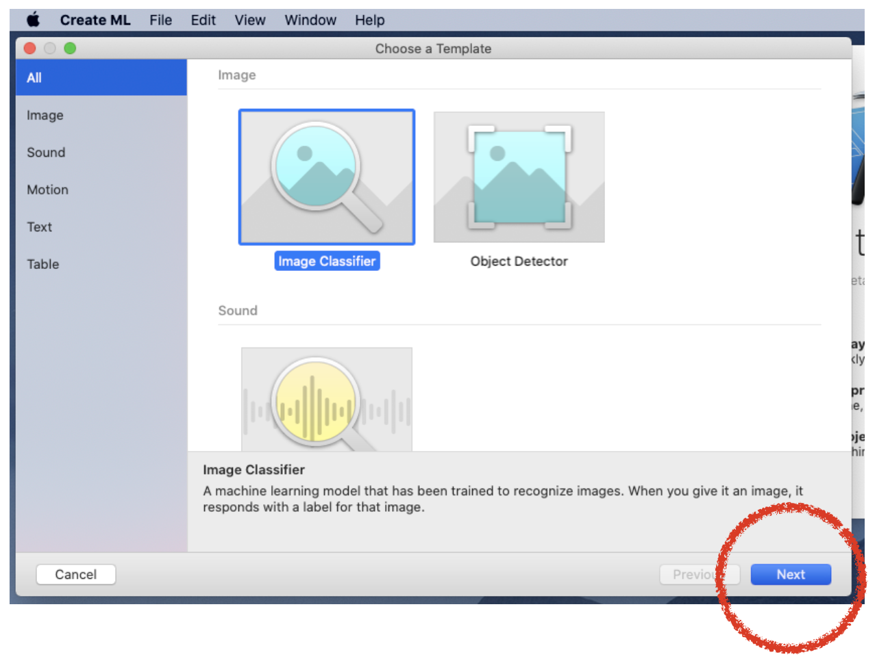 (3) “Image Classifier”を選び、“Next”ボタンをクリックしてください。