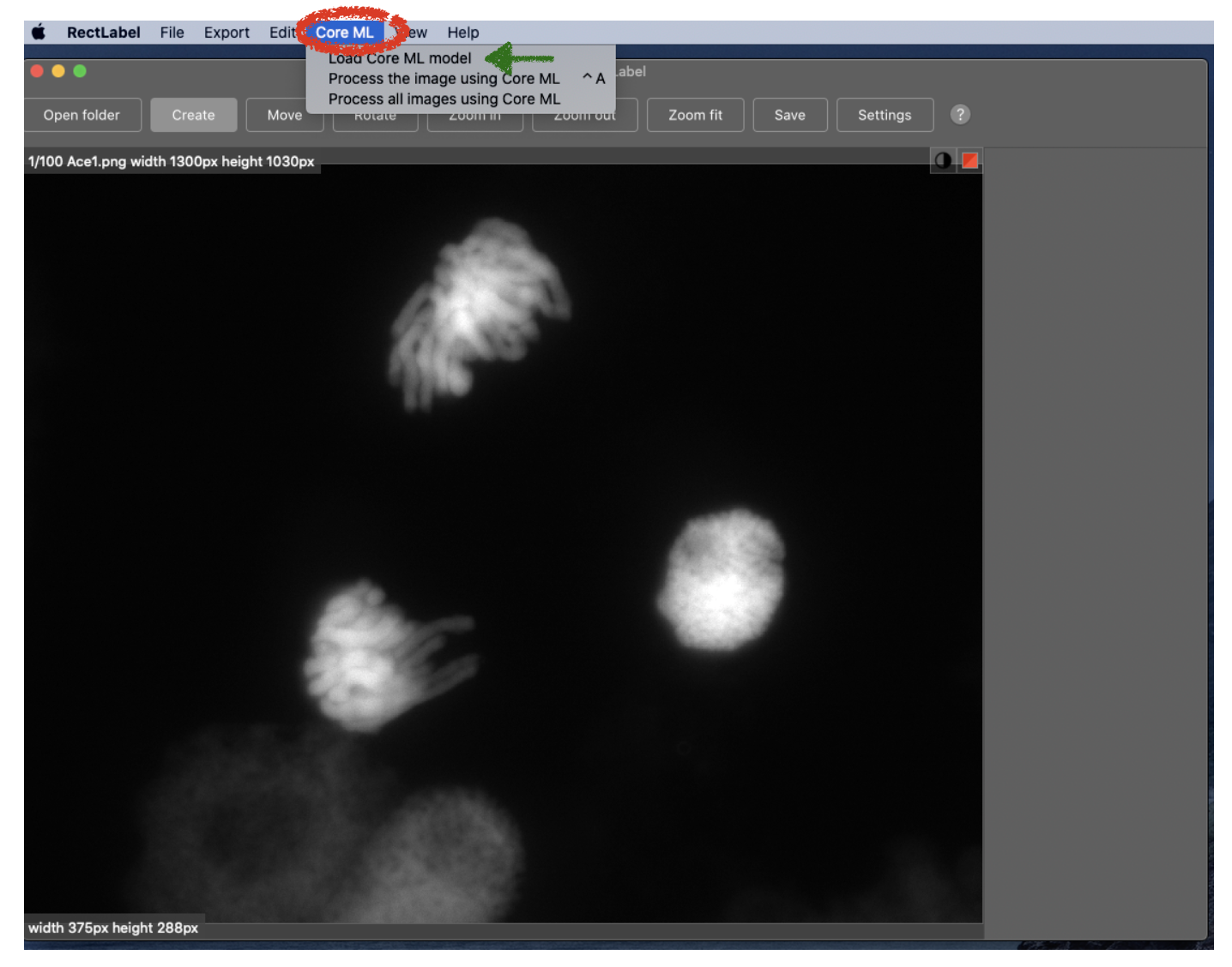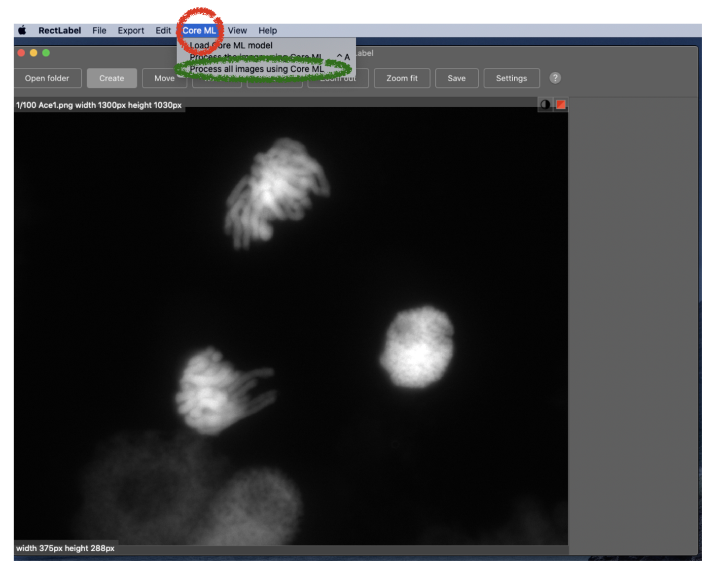 (3) “Core ML”をプルダウンして、アノテーションするために“Process all images using Core ML”を選んでください。